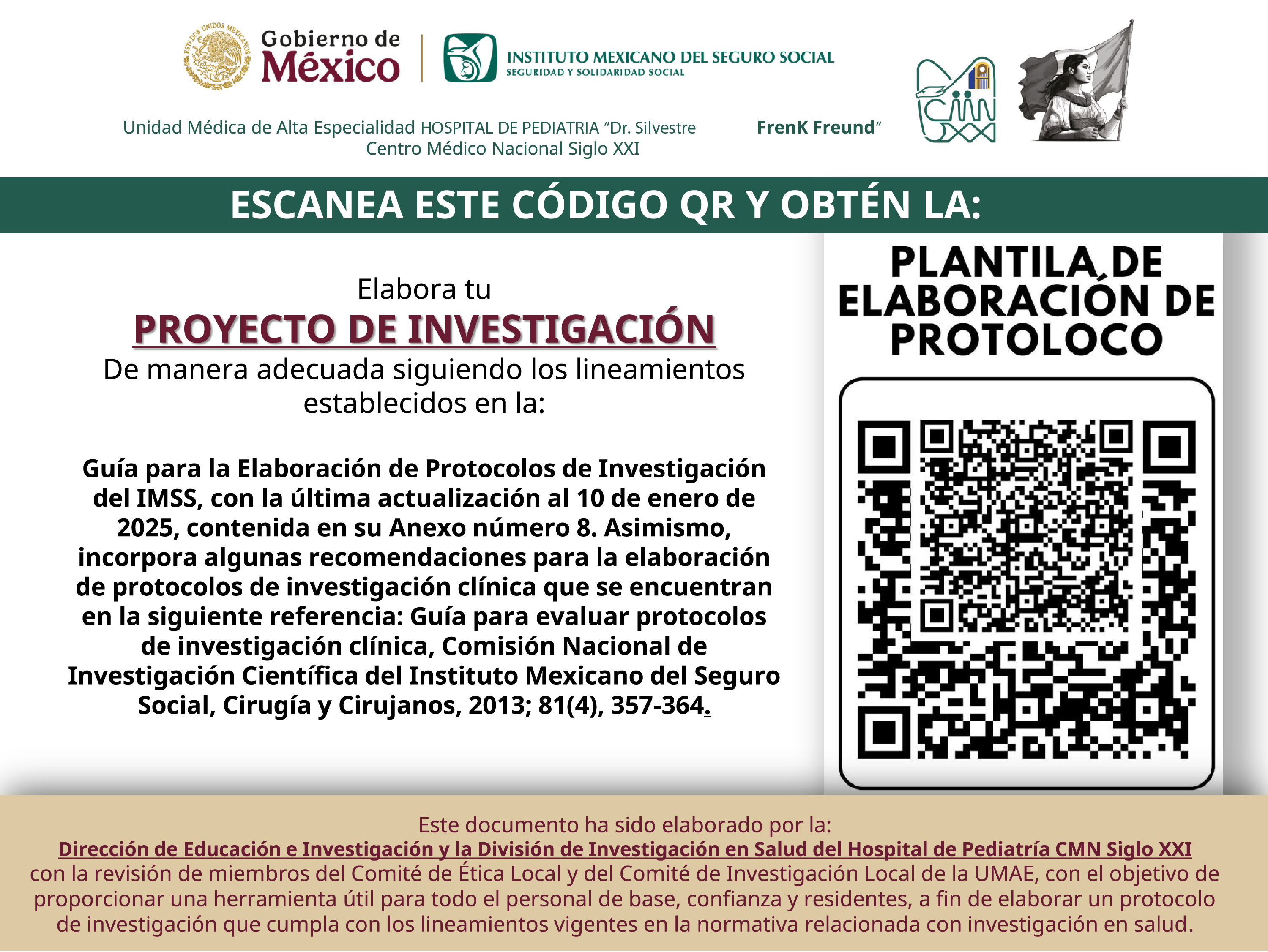 Es necesario que se acerque a la Jefatura del Servicio al cual desea invitar y uno de los Médicos Adscritos de la misma deberá fungir ante nuestra institución como el representante del proyecto. Independientemente de que su trabajo haya sido registrado en su institución deberá ser registrado en la Comisión Nacional de Investigación del IMSS que dará su aval para que el proyecto se pueda llevar a cabo en colaboración con el IMSS. Si el proyecto se está realizando dentro de algunos de los hospitales del IMSS, la Dirección de Educación e Investigación de nuestro hospital deberá ser notificada de nuestro personal involucrado y del protocolo que se llevará a cabo. Por medio de un escrito se aceptará la participación de nuestro hospital en los estudios a que sea invitado nuestro personal e involucre a nuestros pacientes.